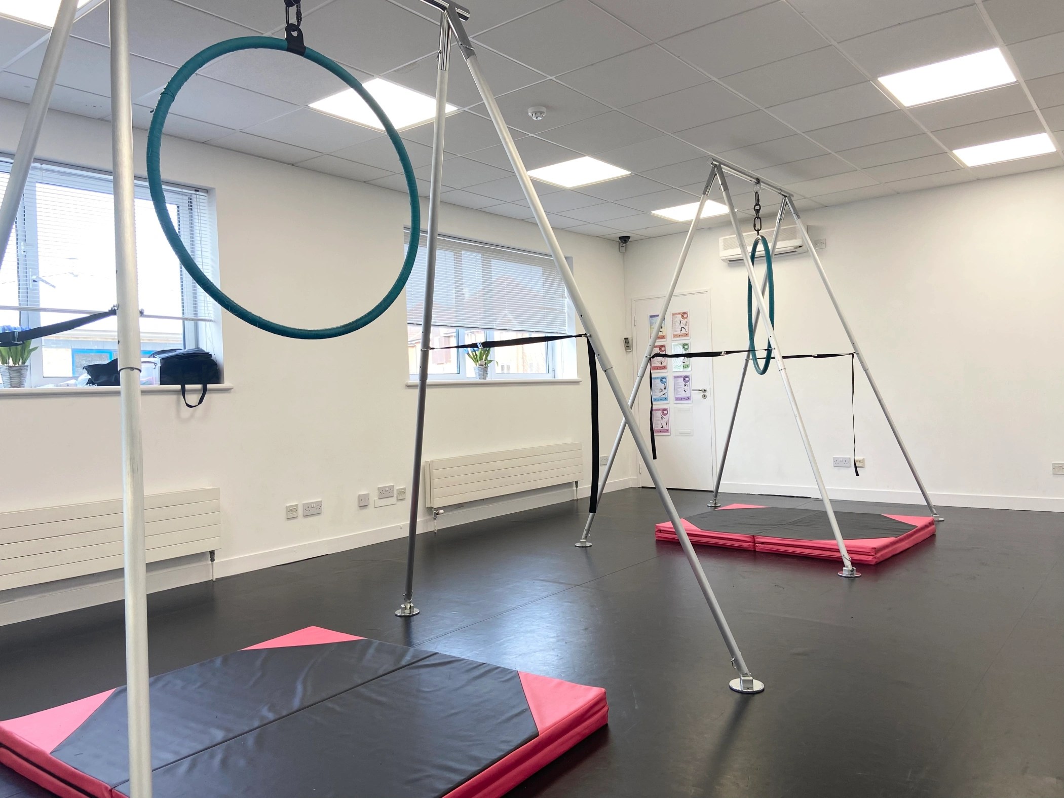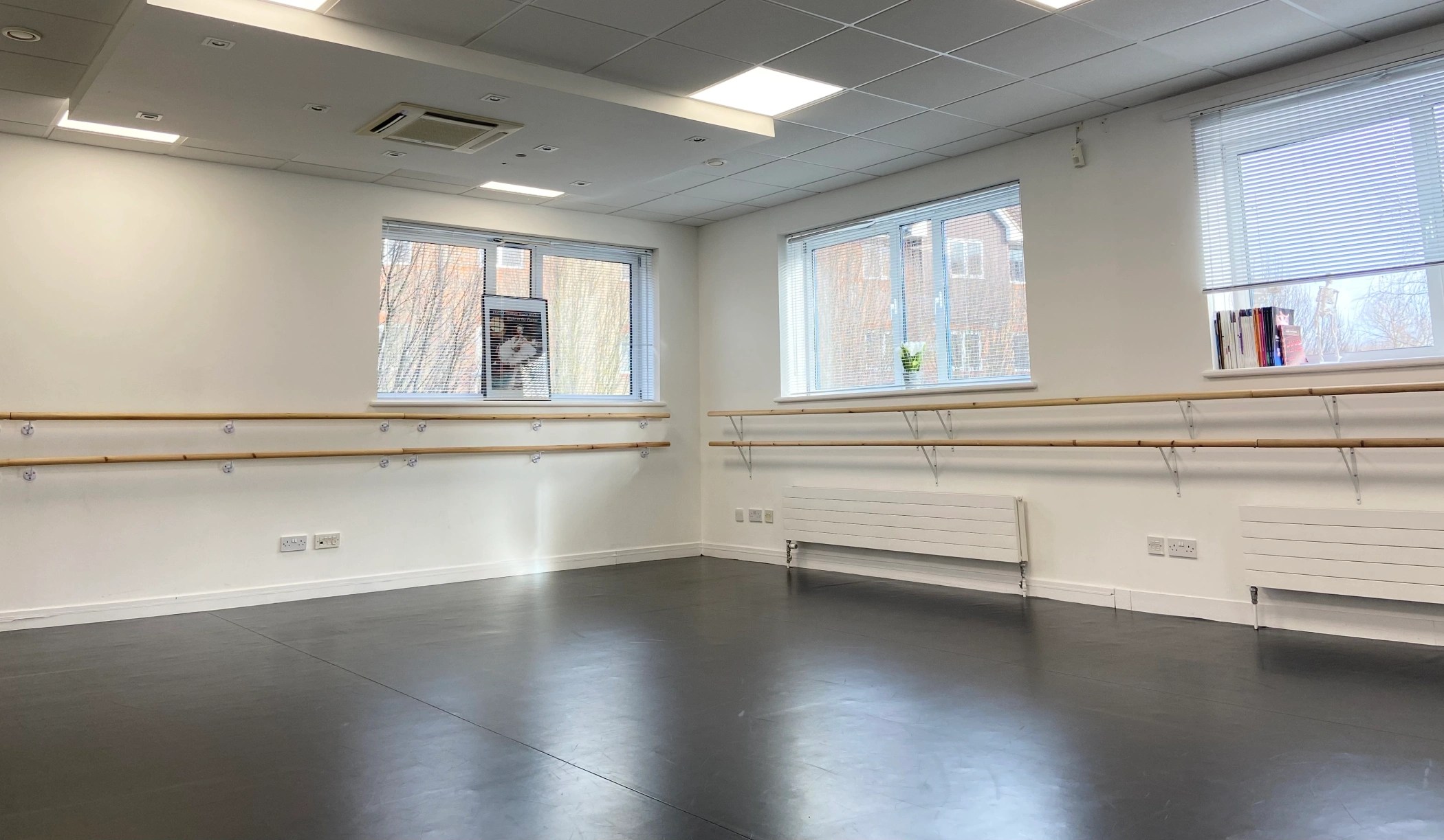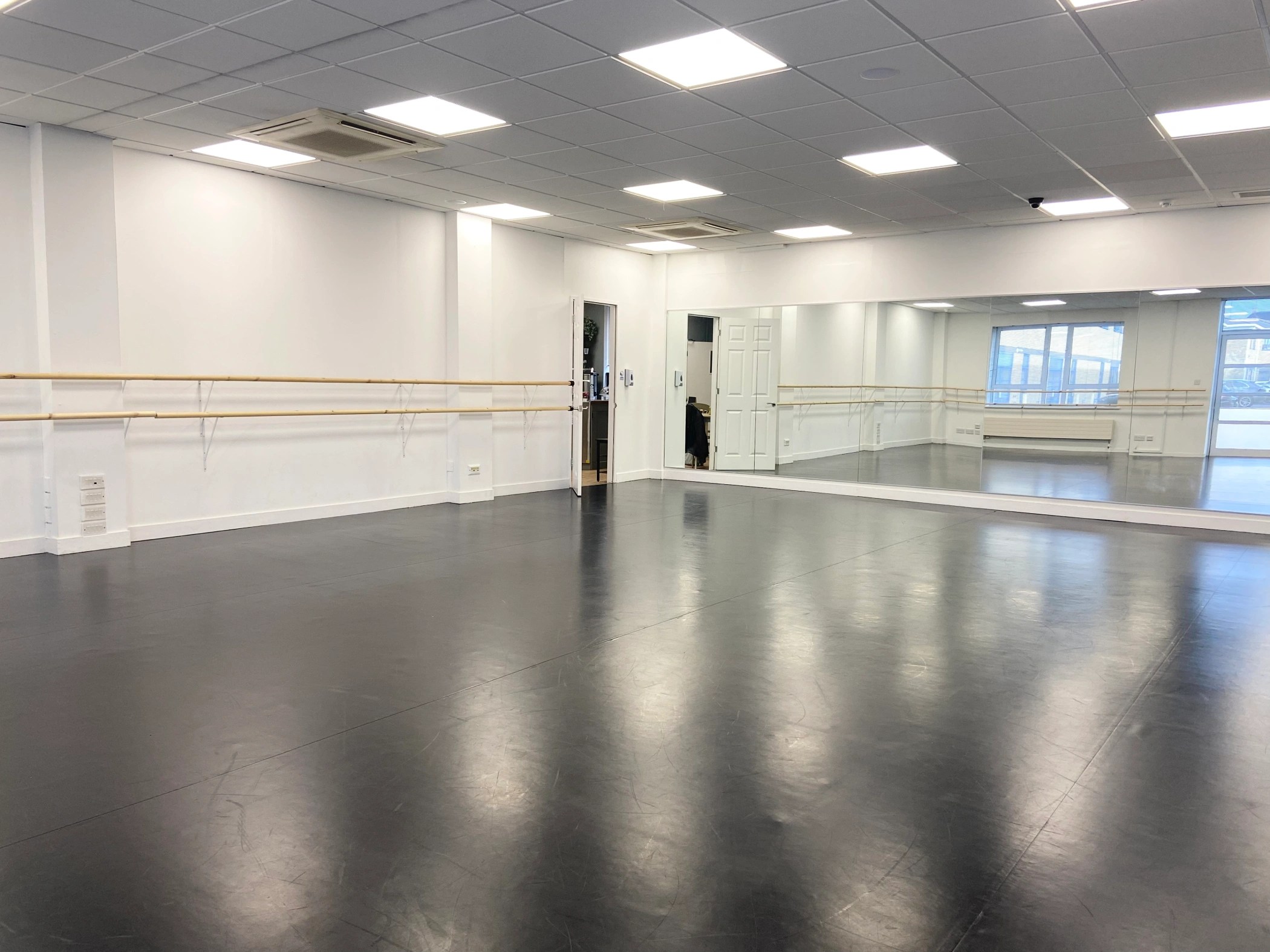 Each of our spacious studios is equipped with professional mirrors, sturdy barres, and premium LeMark dance floors, providing the perfect foundation for safe, high-quality training in dance, musical theatre, acro, aerial, and more. Our bright, airy spaces are filled with natural light and the energy of students working together, learning from one another, and celebrating every achievement—big or small.